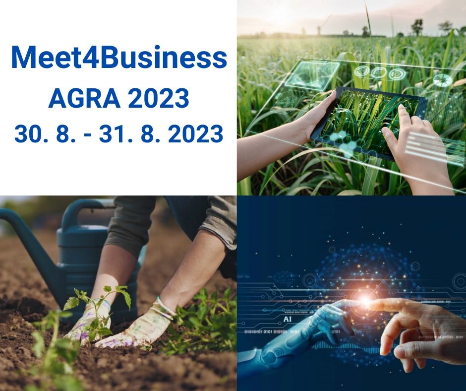 Regionalna razvojna agencija za Podravje - Maribor / Enterprise Europe Network, Pomurski sejem d.o.o. in Razvojni center Murska Sobota vas VABIMO na mednarodno poslovno srečanje MEET4BUSINESS - AGRA 2023, ki bo potekalo 30. avgusta 2023, v živo na sejmišču v Gornji Radgoni in 31. avgusta 2023, preko spleta v sklopu 61. Mednarodnega KMETIJSKO-ŽIVILSKEGA sejma AGRA v Gornji Radgoni.