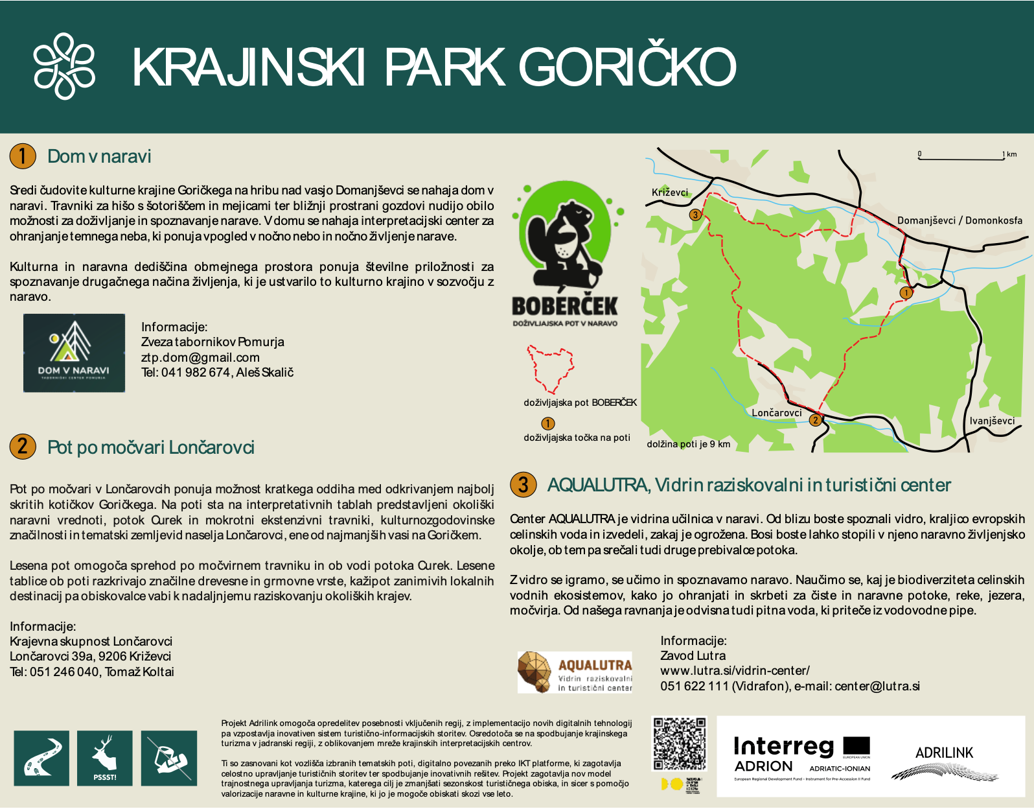 Lahko pa se preprosto odpravite na 9 km dolgo učno pot Boberček, na kateri si boste ogledali interpretacijski center, sprehodili po močvari, obenem pa lahko obiščete še center Aqualutra in spoznate vidro.