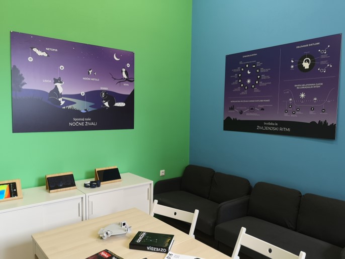Ustavite se lahko tudi na razgledni ploščadi, ki vam bo s pomočjo interaktivnih plošč, pomagala spoznati razsežnosti svetlobnega onesnaževanja.